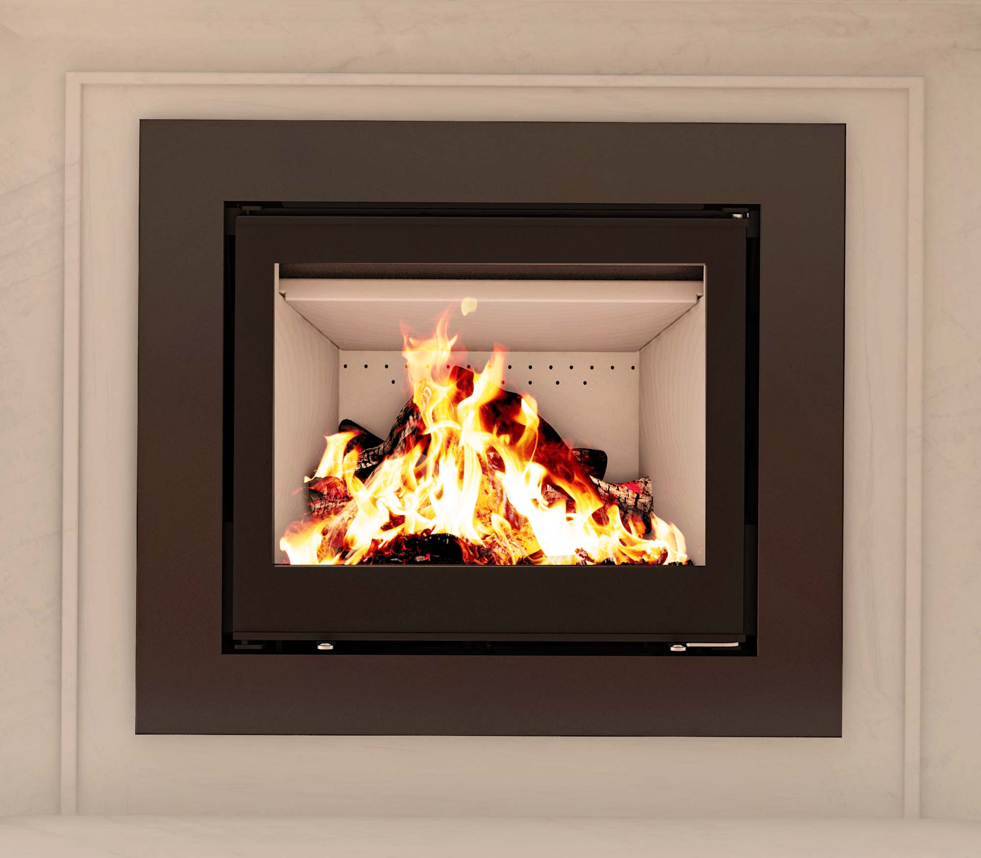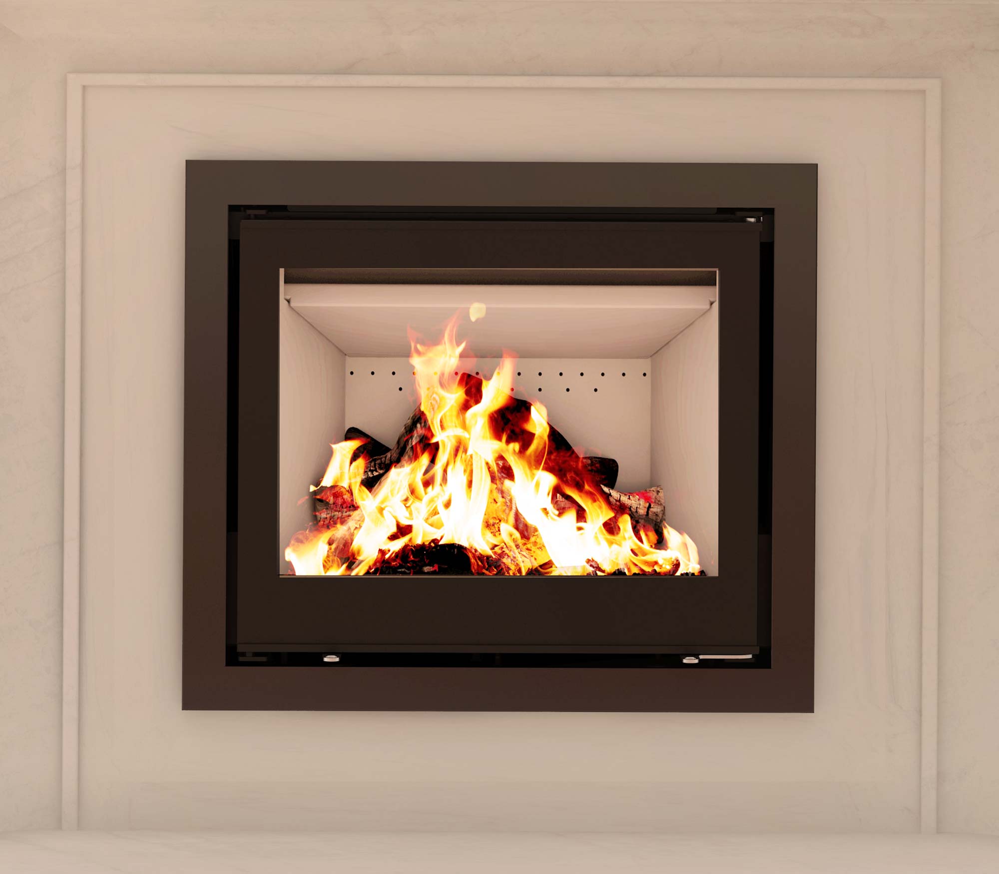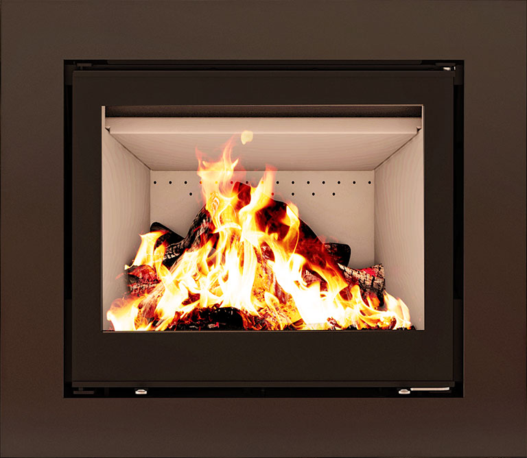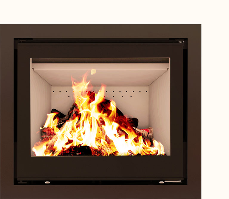 • Design affleurant avec grande vitre pour vue sur les flammes.